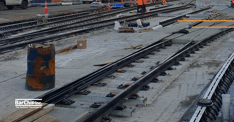 Contractors also improved construction efficiency with a fibre reinforced solution. With the original design, all steel and rail tracks needed to be installed before being encased in a single concrete pour. With BarChip, a two stage sequence could be employed. First, a BarChip reinforced base slab is installed, providing structural support and a precise platform for installing rail baseplates. The second stage pour then encases the rails and delivers the final running surface for straddle carriers.