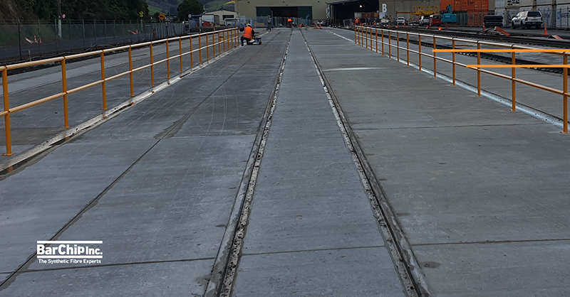 The BarChip fibre reinforced concrete track slab and hardstands provide Port Otago with a modern, corrosion free concrete solution designed for long term durability and reduced maintenance in a harsh coastal environment.