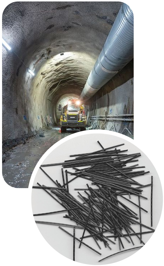Nossas fibras reforçam revestimentos de túneis pulverizados, fundidos e pré-moldados